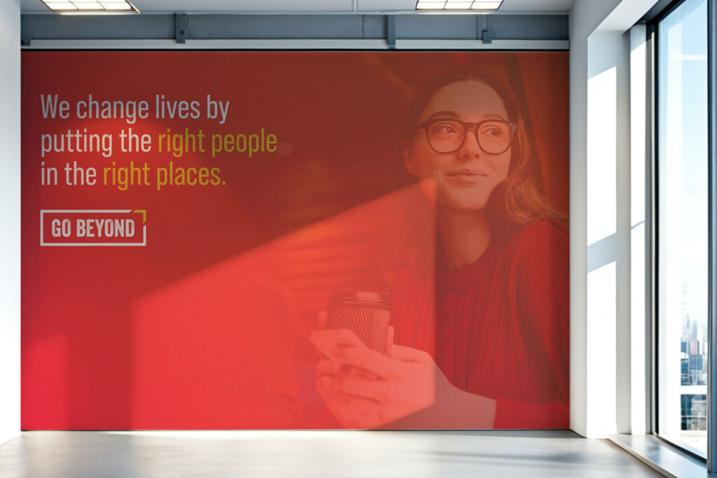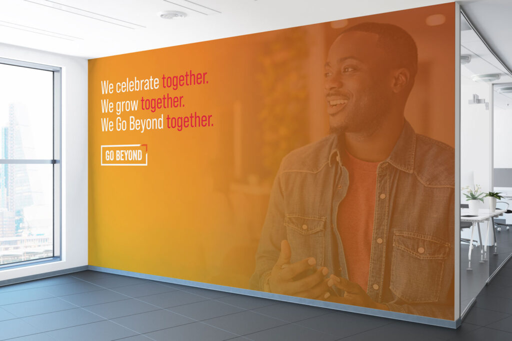 The holistic rollout unified the employer brand across continents, visibly boosting morale and engagement. The new identity greeted employees and visitors alike in offices worldwide and underpinned all recruitment communications, strengthening Go Beyond’s position at the heart of the company culture.